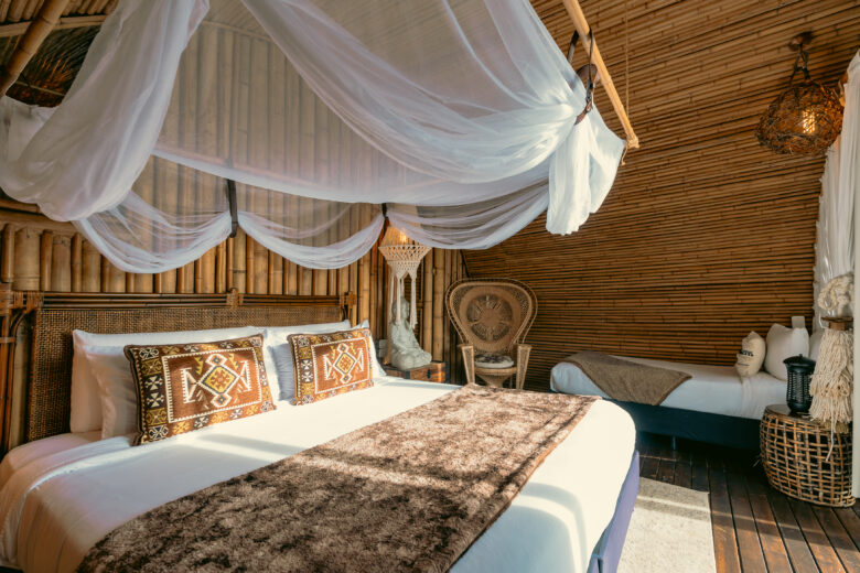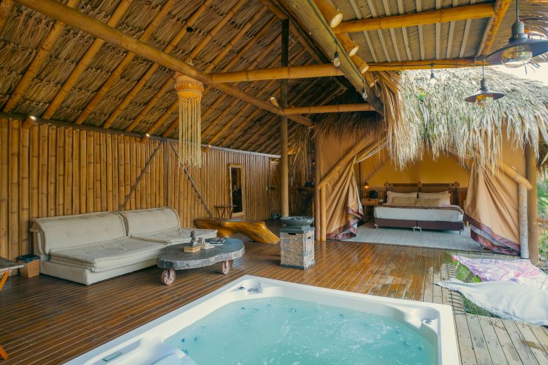 327 m² de estilo gramping tropical. Incluye dos matrimoniales, una individual opcional, dos baños, jacuzzi y terraza con vista majestuosa al Peñol.