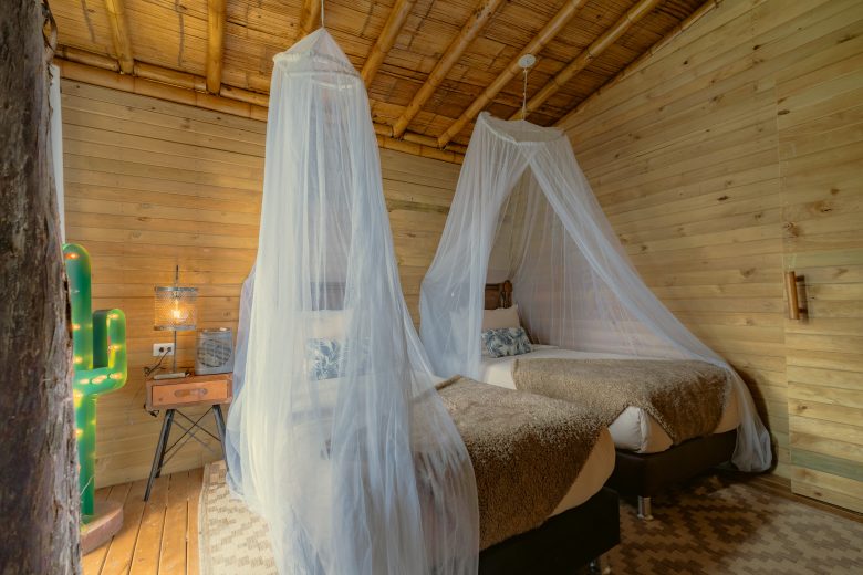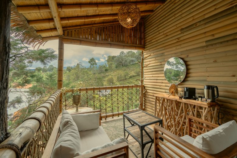 Elevada en medio del bosque, con 69 m², cama matrimonial, dos individuales, baño, jacuzzi, fogata y deck terraza con vista directa al Peñol. Una experiencia de altura que invita a soñar despierto.