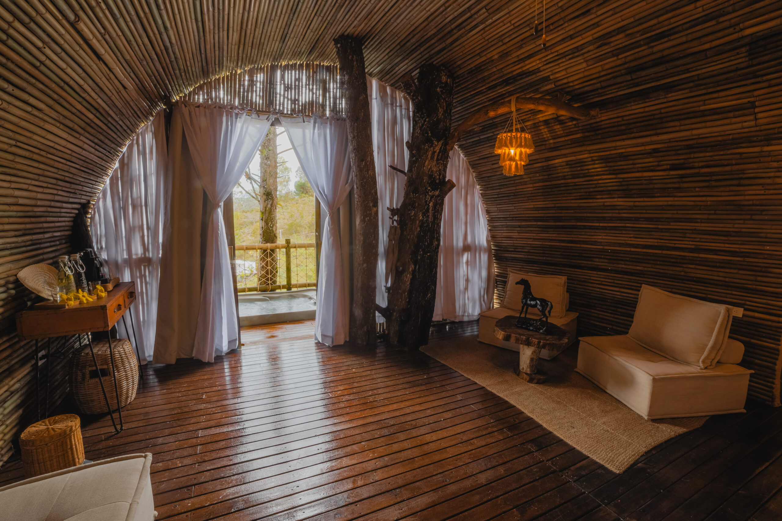 Entre el murmullo del agua y la brisa que acaricia las montañas de Guatapé, Bamboo Serenity 1 se alza como un refugio íntimo donde la comodidad se funde con la serenidad natural.
