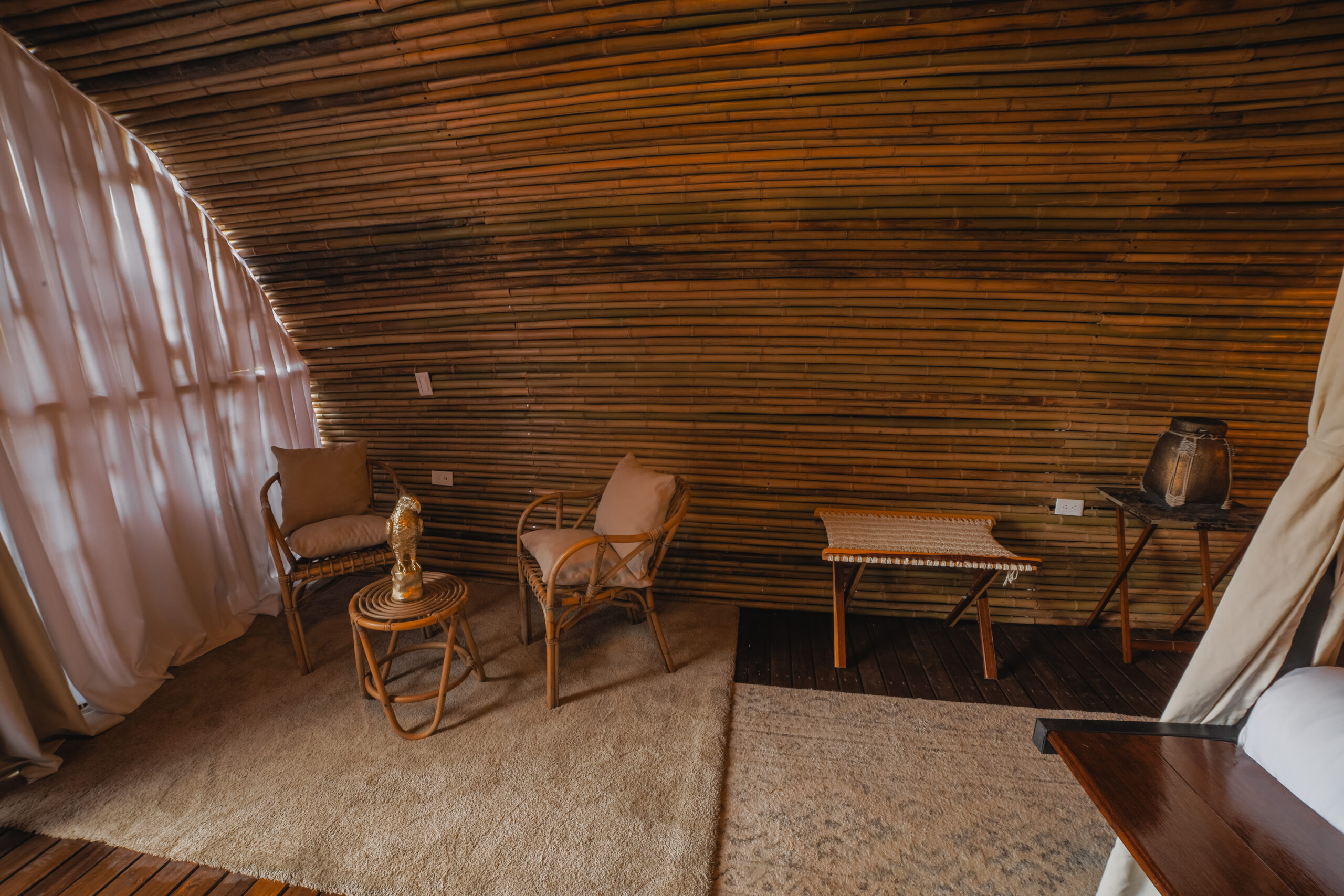 Pensada para dos personas, esta villa combina elegancia y confort en un espacio con cama king, baño privado con ducha caliente, cafetera y delicados muebles de descanso que invitan a disfrutar cada momento.