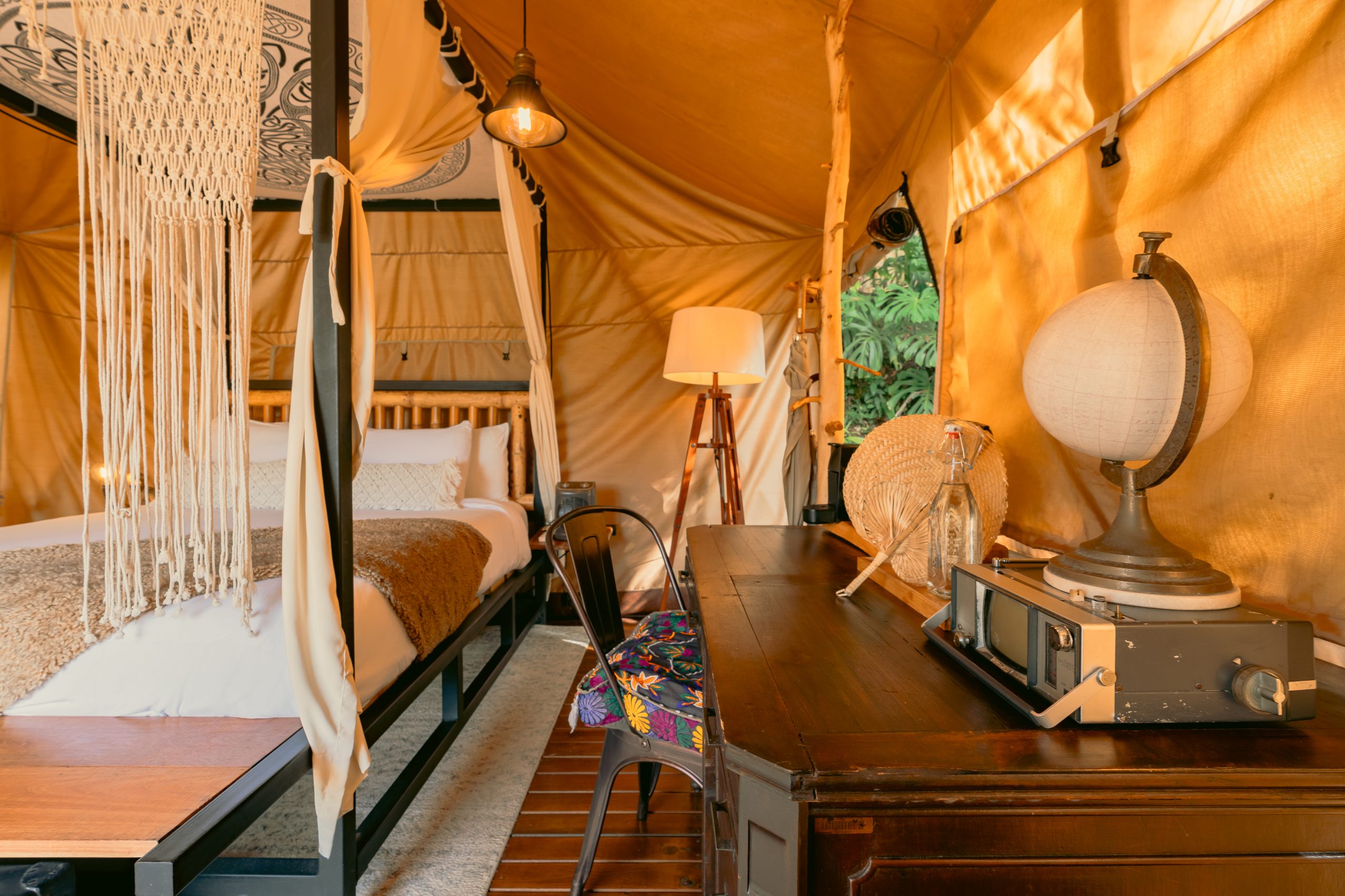 Con 42 m², cada carpa ofrece cama Queen, baño privado, jacuzzi al aire libre y un deck terraza que abre las puertas a vistas únicas. Un espacio donde la aventura se funde con la calma, pensado para quienes buscan una conexión íntima con la naturaleza sin renunciar a la comodidad.